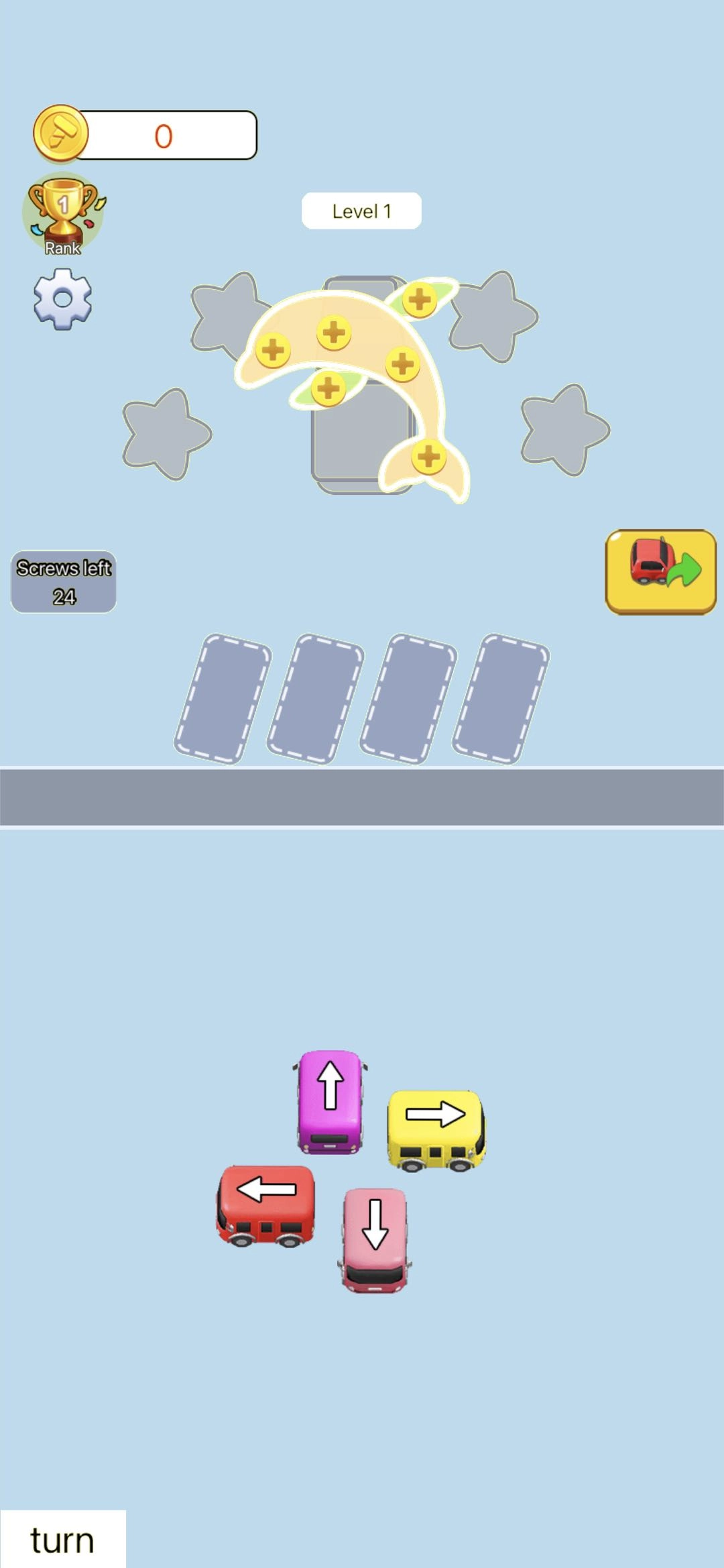 During peak hours, the parking lot is packed with cars that can’t get out. Use your wisdom to move the cars vertically or horizontally—carefully help them navigate through layers of obstacles, successfully pick up screws of the same color, and then drive onto the road. A little heads-up: try not to hit anything when moving the cars… or you can also enjoy the fun of cars crashing into obstacles! After all, in this car-moving casual puzzle game, you don’t have to pay a single cent for car repairs.